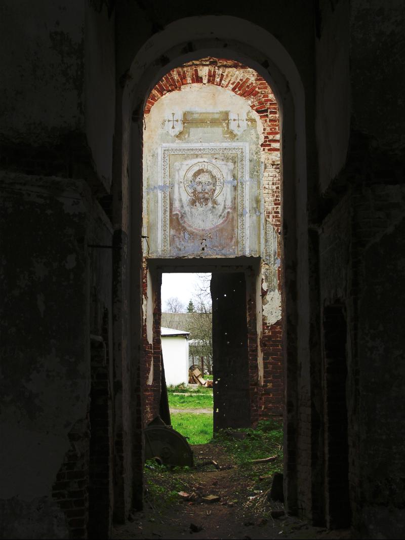 Врутри здание церкви сильно расчленено стенами и арками. Кое-где сохранились фрагменты росписей, выполненных маслом в 1903 году на месте более ранних.