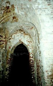 Редкий кадр - уцелевший проем стрельчатой двери. Гораздо больше в Каргашине проломов и пробоин.