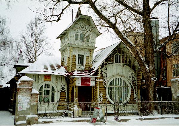 Бесспорным шедевром среди них является домик-теремок основателя первой в Кимрах механической обувной фабрики "Якорь", Н.А.Столярова (ул. Кирова, 28; на карте под номером 1).