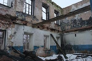 Но в начале 2000-х здание было еще цело. Не так давно пожар уничтожил второй этаж, а также добрался до перекрытий первого. Увы, вряд ли этому архитектурному мамятнику суждено быть восстановленным.