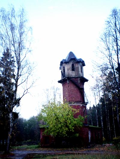 Водонапорная башня, построенная при последнем владельце Сахарова, пример архитектуры эклектики романтического направления. Узкие стрельчатые окна украшают три восьмигранных яруса башни. Балкон верхнего яруса опирается на изящные кронштейны, над окнами - щипцовые кровли.