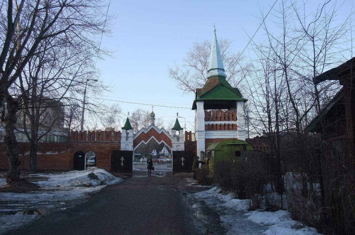 В XIX веке (после пожара) в монастыре велось активное строительство, места не хватало. Решено было с западной стороны присоединить новую территорию, которую обнесли симпатичной кирпичной оградой с башенками и воротами в псевдорусском стиле.