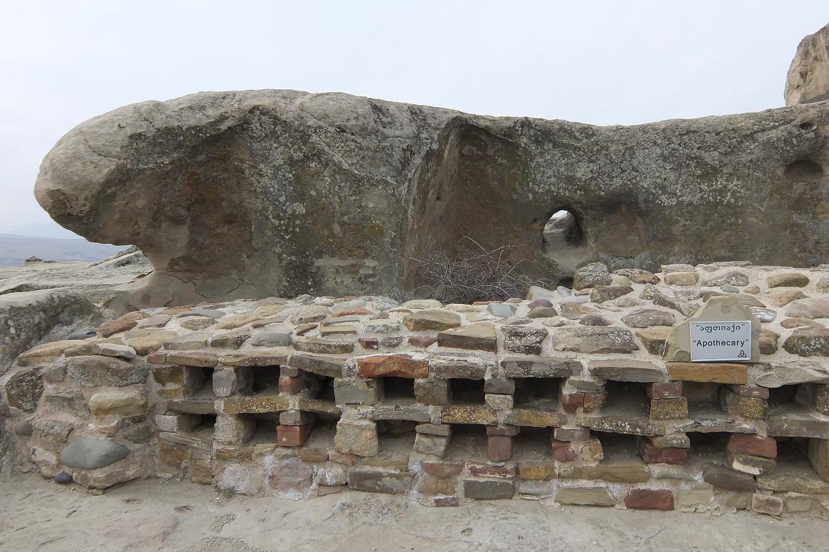 Необычным сооружением является "аптека", где к каждой ячейке стены хранились различные сухие травы, предназначенные то ли для врачевания, то ли для ритуальных действий.