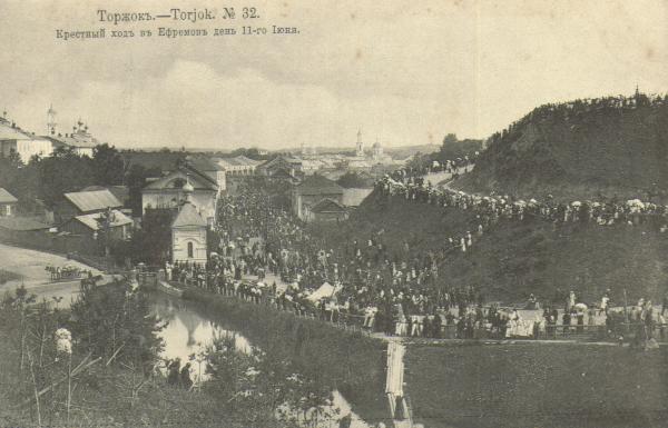 Торжок, основанный как пограничный город на краю владений Великого Новгорода, также не сохранил следов своей древней истории. Но, будучи богатым торговым городом на пересечении Вышневолоцкоого водного пути и тракта Москва - Санкт-Петербург, он активно строился в XVIII и начале XIX века. Затем, с постройкой Мариинской водной системы и Николаевской железной дороги, Торжок потерял свое былое значение, но сохранил огромное количество памятников архитектуры периода своего расцвета, рассыпанных по крутым и живлписным берегам Тверцы.