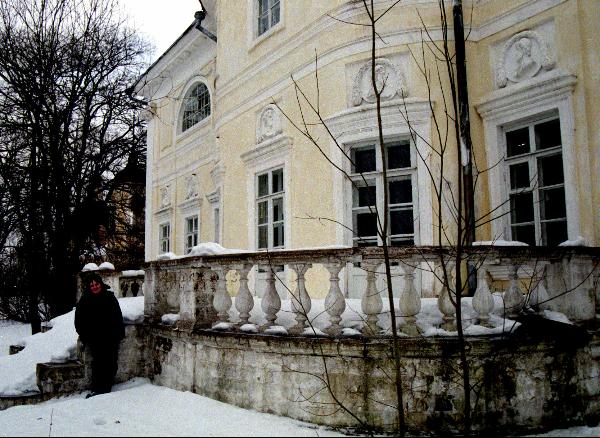 Противоположная сторона главного дома, обращенная ныне к Озернинскому водохранилищу, обработана не менее тщательно: сохранились лепные барельефы медальонов с греческими профилями и гирляндами. Выступающий овальный эркер окружен полукруглой террасой, с которой когда-то можно было спуститься по крутому берегу к реке Озерне.
