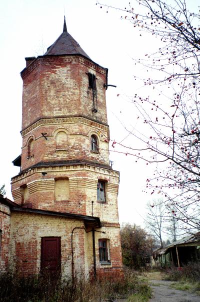 А вторая, четырехярусная башня и теперь завершает переднюю стену монастырской ограды. Восьмигранные шатровые строения украшены кирпичными поясками, оконными бровками и выкладками на карнизах.