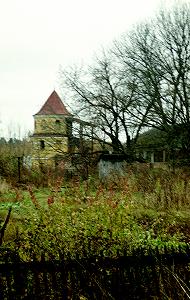 Невысокая ограда, вдоль которой тянутся службы, завершалась трех- и четырез-ярусными жилыми башенками, одна из которых ныне на чьем-то участке используется для личных нужд.