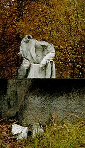 Голова Ленина роет землю носом рядом с обезглавленным туловищем, и рядом с обезглавленным собором. Кругом запустение...