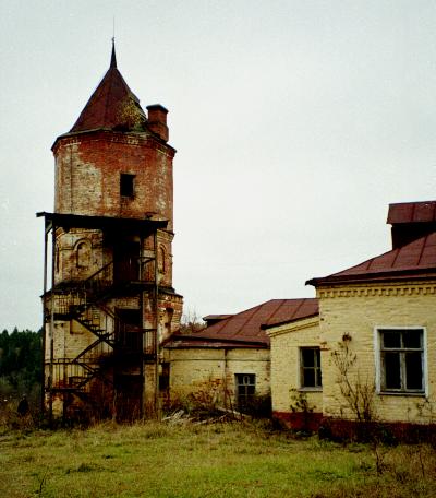 Свято-Троицкий Александро-Невский общежительный девичий монастырь возник в 1899 году на основе женской общины (учреждена в 1889 году на средства Ф.О.Захарова). Было здесь две церкви и множество жилых и подсобных построек. Кирпичные строения хорошо сохранились: перестроенный собор, два жилых корпуса, передняя часть монастырской ограды с башенками, Святыми воротами и примыкающими службами. Самым интересным и значительным архитектурным памятником является собор Александра Невского, построенный в 1902-1904 годах по проекту И.П.Машкова (известного московского архитектора, участника реставрации Успенского собора в Кремле, храма Василия Блаженного на Красной пл., автора множества построек). Храм был стилизован под XVII век, декорирован кокошниками, наличниками, ширинками и колонками. Главный вход располагался в южном торце западной паперти (что встречается довольно редко) и был украшен нарядным крыльцом. Сейчас обнаружить собор не так просто, хотя вид на него открывается прямо от Святых ворот. Перед нами здание из стекла и бетона, типичная постройка 1970-х годов, а где же храм? Внутри! Подойдя поближе и приглядевшись, за стеклянно-бетонным фасадом видишь три белых апсиды с кирпичными узорами: нижняя часть церкви прекрасно сохраняется под таким своеобразным колпаком с железной олимпийской символикой сбоку. Бесстолпный четверик, перекрытый глухим сводом, когда-то завершался двумя ярусами кокошников и декоративным пятиглавием. К сожалению, верхняя часть собора не сохранилась, окна растесаны. Все это, вместе с современным "наружным убранством" мешает получить полное представление о памятнике. Ныне это скорее своеобразное свидетельство эпохи всевозможных преобразований. Рядом огромный Ленин без головы. Голова вгрызается в землю самостоятельно, чуть поодаль. На спортивной площадке мирно пасутся коровы. Местное население потихоньку растаскивает деревянные постройки и приватизирует каменные. Жизнь пионерского лагеря "Факел" тоже уходит в небытие на рубеже веков...