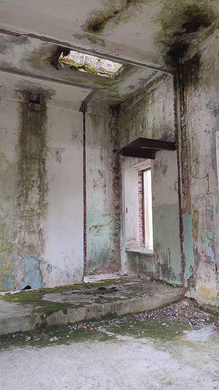 Северная часть здания в лучшем состоянии, кое-где осталась крыша. В башне сухо, видны следы, вероятно, какого-то подъемного механизма.