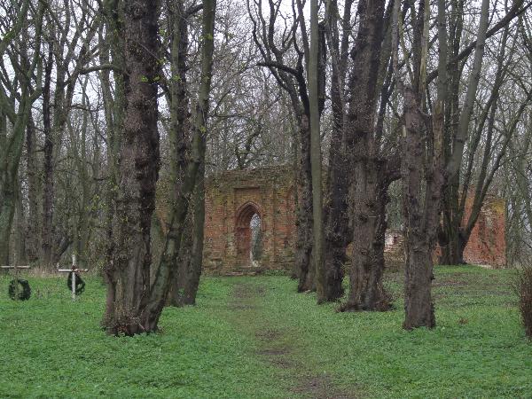 Пройдя вдоль укреплений чуть вглубь, можно увидеть еще один памятник. За аллеей вековых деревьев виднеется старая кирха.
