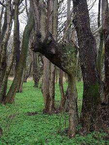 Она стоит среди сказочного леса. Что ни дерево, то - живое существо.