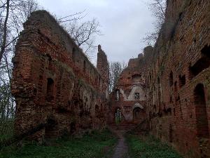 Единственная хорошо сохранившаяся часть замка, бывшее четырехэтажное здание конвента, производит сильное впечатление. Проход довольно узок, стены высоки, обвалившиеся кирпичные арки, окна в никуда...