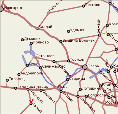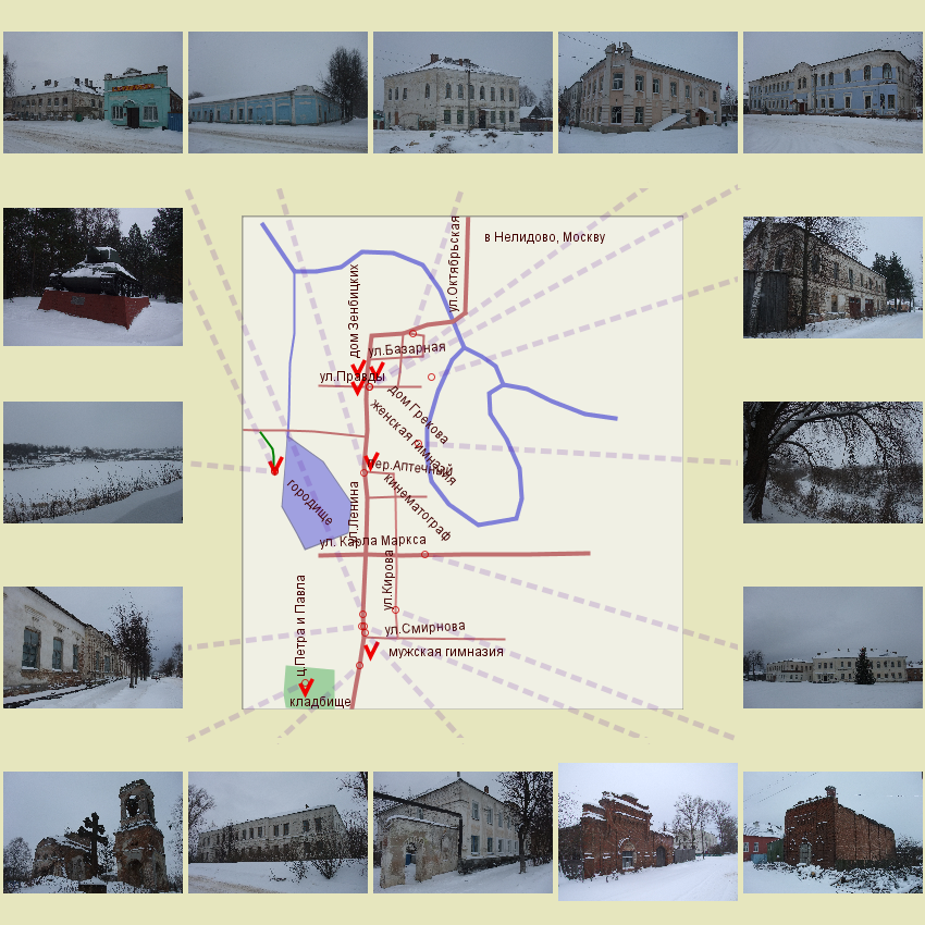До города Белого отовсюду далеко, а зимой он и вправду "Белый", и дорога к нему белая... Очень старый город с интересной историей, почти забытый ныне. Название свое получил он от реки Белая, до XVIII века и город назывался Белая (в женском роде). Вот и первая загадка - стоит сей населенный пункт на реке Обше, а как же название? По легенде заложен был город на реке Белой, впадающей в Обшу выше по течению. Было заготовлено много деревянного стройматериала, но половодье смыло все и вынесло в нынешнее место. Здесь по велению Богородицы и возвели город, первоначально названный Богородичен.Вероятно, таково было название близлежащего села с церковью Введения (впоследстви Введенский монастырь) на правом берегу Обши. В XIII веке окрестные земли входили в состав Смоленского княжества, но уже к середине XIV были завоеваны великим князем литовским Ольгердом и вошли в состав Литвы. к 1355 году относится и первое летописное упоминание Белого. В 1375 город был ненадолго захвачен московским великим князем Дмитрием Ивановичем Донским. В начале XV века литовский великий князь Витовт решил создать здесь Бельское удельное княжество, а князем посадил внука Ольгерда - Ивана Владимировича, ставшего основателем рода известных в русской истории князей Бельских. Местные князья вскоре стали искать покровительства Москвы, и в 1500 году князь Семен Бельский бежал в Москву " со всею своею вотчиною". В ходе начавшейся войны Белый с окреснными землями отошел к Московскому государству. В 1506 году была построена деревянная крепость на земляных валах (сохранившихся до наших дней). Крепость была окружена водой: озеро Веселое, река Веселка, озеро Бездонное; оба озера с юга и запада соединял ров. Долгое время крепость играла важную роль. В Смутное время и в последующие русско-польские войны она не раз переходила из рук в руки, в основном оставаясь под властью Польши. В 1625 году польским королем Белому было даровано магдебургское право, но по Андрусовскому перемирию 1667 года город окончательно вошел в состав России. В те времена здесь было несколько деревянных церквей, крепость состояла из Верхнего и Нижнего города. Верхний был укреплен четырьмя угловыми шатровыми башнями, имел проездные ворота в стене. В Нижнем городе было пять башен, одна из них с воротами и караульным чердаком. Постепенно русско-польская граница отодвинулась к западу. Крепость утратила оборонительное значение. К концу XVII века стены и башни частично сгнили и развалились. Вместе с тем росло торговое значение Белого, оказавшегося на важном водном пути. В 1723 году по приказу Петра I здесь была учреждена пристань для торговли хлебом, пенькой, лесом. Город рос и богател, но в 1766 и 1767 году страшные пожары уничтожили почти всю застройку. Это привело к тому, что Белый стал одним из первых провинциальных городов, получивших регулярный план (утвержден в 1769). Границы населенного пункта почти не изменились, но он стал разбит на кварталы прямоугольной формы, что не всегда соответствовало природному рельефу. Одновременно были подготовлены образцовые проекты для каменных и деревянных домов.В 1780 году утвердили герб, в верхней части повторяющий смоленский, а внижней изображающий на зеленом поле два мешка с мукой, перевязанных золотыми шнурами. Город стал отстраиваться, росли деревянные и каменные церкви, возводились жилые дома и общ