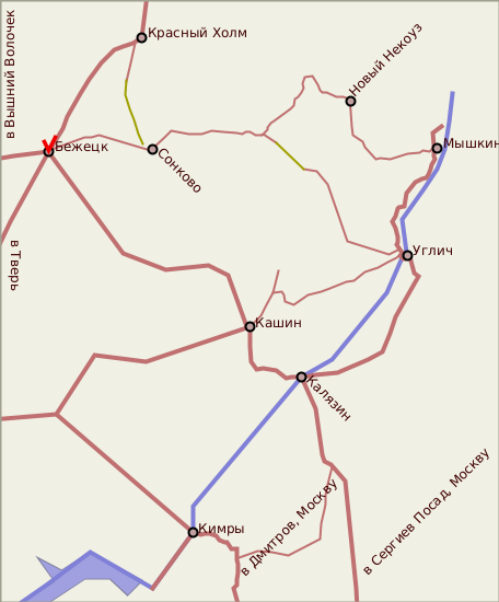 Бежецк - симпатичный и своеобразный по своей застройке старый русский город. Он расположен в центре района, по видимому, еще в древности освоенного земледельцами - иначе трудно объяснить, как в столь северных широтах образовался этот полевой "оазис" среди дремучих тверских и новгородских лесов. Действительо, первое упоминание о укрепленном граде Городецко (старое новгородское название Бежецка) относится к 1137 году, но поселение было здесь, у слияния рек Мологи и Остречины, и раньше. Городецко входило в состав новгородских земель и, имея лишь земляные укрепления, страдало от набегов татар, литовцев и тверичей. В XV - XVI вв. весь Бежецкий Верх (с центром в Городецко) был присоединен к Московскому княжеству. В 1610 году, во время польского нашествия, город был разрушен, после чего началось строительство мощной деревянной крепости с тринадцатью башнями. Первым каменным зданием стала Введенская церковь одноименного монастыря (1680-1682), от которой сохранилась шатровая колокольня. В 1766 году Городецко был переименован в Бежецк и вскоре стал уездным центром Тверской губернии. В XVIII веке здесь велось интенсивное строительство церквей, из которых до наших дней дошли Воздвиженская, Спасо-Преображенская, Казанская, Рождества Христова (перестроена)). В 1777 году был утвержден регулярный план Бежецка с прямоугольной сеткой улиц. Центром города стала большая торговая площадь (Советская пл.) на месте окончательно развалившейся деревянной крепости, вместо которой за 40 лет были возведены торговые ряды, использующиеся и ныне по своему прямому назначению. Был построен мост через реку Мологу, весь город окружили валами с рвом и четырьмя воротами, началось строительство каменных жилых домов по образцовым проектам. Однако удаленность от водных и сухопутных торговых путей не способствовала экономическому развитию Бежецка, в начале XIX века население даже стало уменьшаться. Все изменилось с постройкой Московско-Виндавско-Рыбинской железной дороги, станция которой расположилась на правом берегу реки Остречины (1876). Вдоль железной дороги появилась Красная Слобода, пошла в гору традиционная торговля льном, который вывозился теперь не только в соседние губернии, но и за границу. В городе шло активное деревянное и каменное строительство. В 1870 - 1890-х годах был возведен огромный Благовещенский монастырь в стиле эклектики. Сейчас это - Рабочий городок, среди монастырских стен развернулось строительство современных зданий, ни в коей мере не гармонирующих со старыми постройками. На рубеже веков были сооружены строения Духовного училища, корпуса Реального училища, женская гимназия, в которой позднее учился известный ученый Лев Николаевич Гумилев (в 1921 году в здании гимназии выступали его знаменитые родители: Николай Гумилев и Анна Ахматова, их усадьба Слепнево была в 9 км от Бежецка). Облик города неузнаваемо изменился в конце XIX - начале ХХ веков са счет жилищного строительства. Господствующий стиль эклектики, переходящей к модерну, способствовал разнообразию городской застройки. Портики, эркеры, аттики, даже атланты - все это и теперь можно видеть в Бежецке. Интересно, что элементы модерна сохранились в городском строительстве до периода НЭПа: удивительно красив дом Расторгуева (1922-1923) на Кашинской улице. Отрадно видеть, что одно- двухэтажный центр города сохран