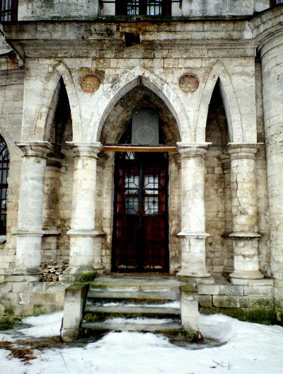Боковые фасады церкви украшены парными двухколонными портиками, увенчанными остроконечными пирамидами.