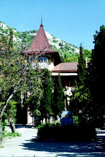 Еще один образец "крымской готики", поскромнее. Ну и, конечно, вездесущий Ильич на постаменте.