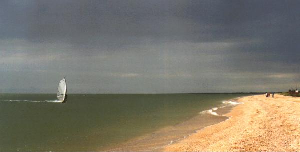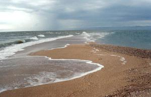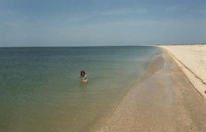 Глубина у берега оптимальная - и за детей не страшно (спуск пологий) и не раздражает мелководье - десяток-другой метров, и дно исчезло. В штиль или при небольшом волнении море чистое, однако в шторм иногда поднимается коричневая муть - видимо, ее приносит со стороны соседствующих с косой глинистых берегов. Но ведь с одной из сторон косы всегда штиль! Справедливости ради отметим, что по чистоте море все же уступает Арабатской стрелке и крымскому берегу, где оно прозрачное практически всегда, но чище, чем на "пересыпи" у Темрюка или в Ейске.