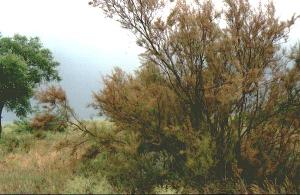 Пушистые кусты тамариска встречаются на косе довольно часто. В июне они уже отцветали, и первое впечатление было немного странное - как будто высохшие небольшие сосны стояли у берега.