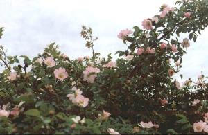 Этот розоватый куст шиповника для косы не характерен - поэтому и попал в кадр. В основном там шиповник белый.