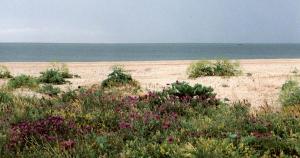 Правда, коса косе рознь. На Арабатской стрелке, например, гулять бессмыслено: идя вдоль косы, видишь абсолютно тот же, как будто застывший, пейзаж, словно у тебя украли одно измерение. Долгая коса разнообразнее - то встретятся серебристые кусты тамариска, то неизвестно откуда взявшийся ряд тополей, то огромные заросли то ли шиповника, то ли одичавшей розы. В начале июня все они цветут белыми цветами. В зарослях встречаются зайцы!