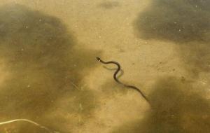 Во внутренних озерах - своя жизнь. Часто встречаются вот такие симпатичные ужата. Иногда попадаются и вполне порядочные взрослые ужи.