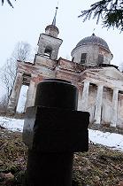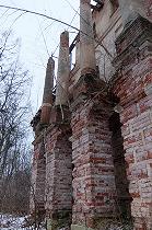 Со стороны колокольни видно, что церковь понесла значительные утраты: фронтоны потихоньку обваливаются, на крыше подрастают молодые березки, колонны крошатся у основания. Здание нуждается в срочной реставрации, пока еще не поздно.