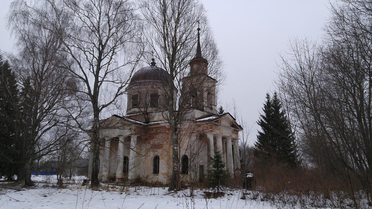 С трех сторон окруженный четырехколонными портиками, храм смотрится величественно и гармонично. С двух сторон лет 15-20 назад посажены ели.