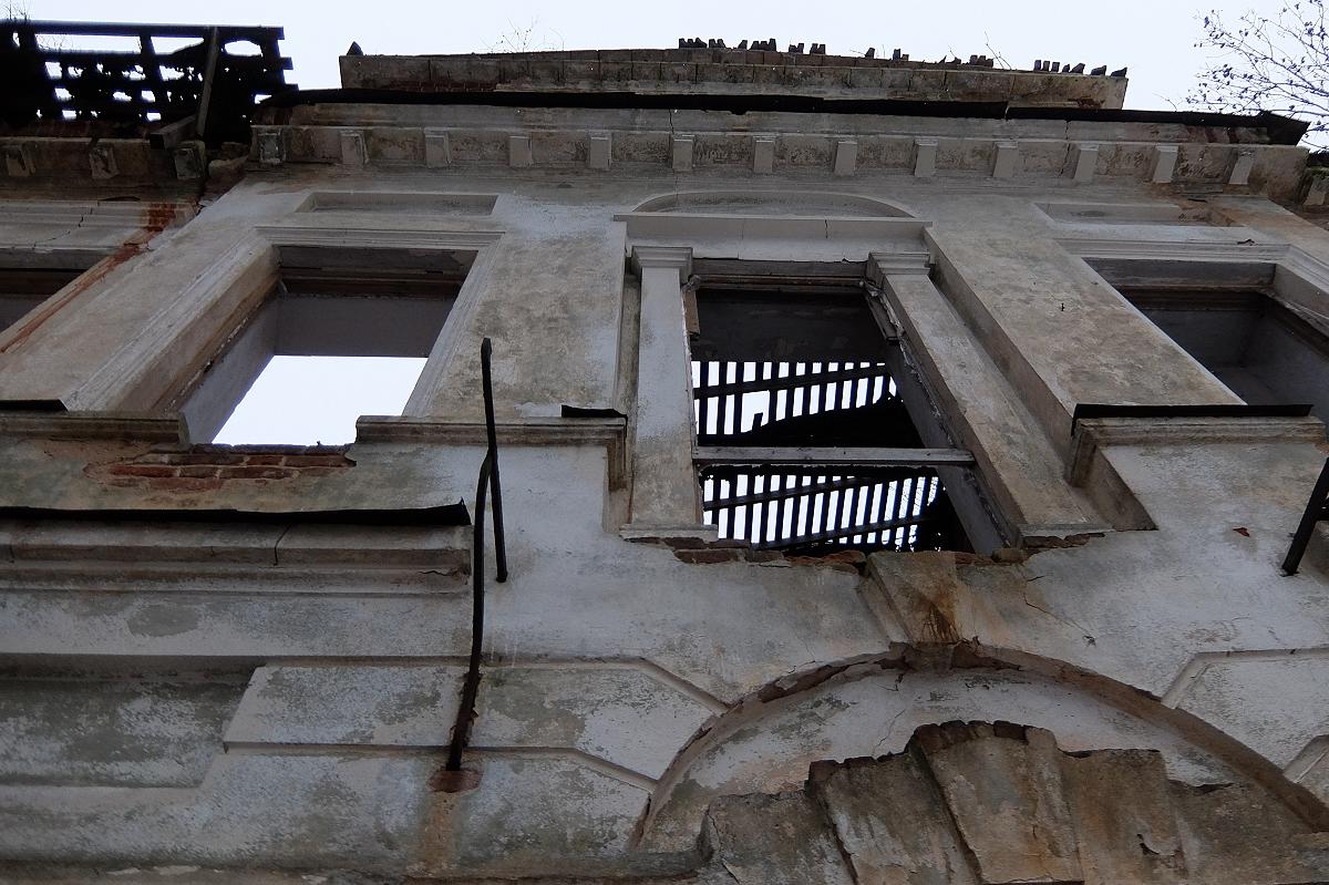 Внешняя отделка дома с рустовкой, пилястрами и прочими украшениями также схожа с убранством дома Н.А. Львова. Однако при внимательном взгляде проступают следы переделок. На боковых фасадах сохранились железные основания балконов.
