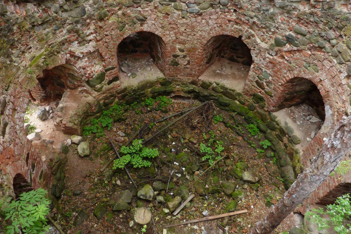 Башня, фактически пристроенная к старой крепости в XV веке, целиком выступала наружу, и поэтому пушки (и ниши для них) располагались почти по всей окружности.