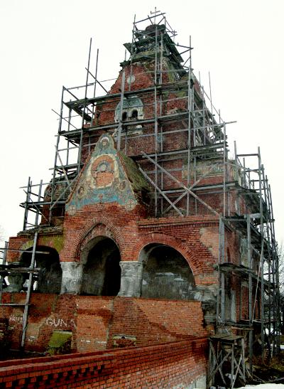 Ныне церковь стоит в "лесах", что могло бы внушать некоторые надежды... Но, увы, развернувшееся рядом строительство скорее порождает сомнения. Прямо перед входом вырыт котлован,где и из кирпича возводится нечто, напоминающее подземный гараж.