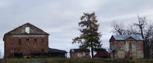 Расположение усадебных построек было довольно компактным, хозяйственная зона отделялась от регулярно спланированного жилого комплекса, включавшего барский дом и 4 флигеля, из которых сохранилось два.