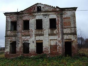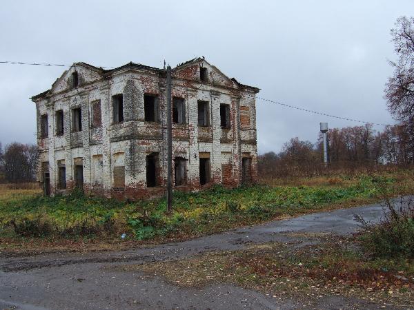 Состояние главного дома удручающе. Когда-то этот "храмовидный" дом кубической формы, украшенный пилястровым портиком с треугольным фронтоном, был увенчан куполом или бельведером. Полукруглыми галереями-переходами он соединялся с каре конного и скотного дворов.