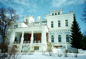 Это и есть усадьба знаменитого булочника Д.И.Филиппова, который обосновался здесь в начале ХХ века. Мало что сохранилось от тех времен: фрагменты старого парка, да двухэтажное здание, в формах.. то ли эклектики, то ли уже неоклассики. Даже затруднительно однозначно охарактеризовать это необычное строение. Предположительным автором проекта считается архитектор Н.А.Эйхенвальд, с 1904 года производивший строительные работы у московского булочника. Среди известных работ зодчего можно назвать оформление интерьеров кофейной Филиппова в гостинице "Люкс" и участие в перестройке гостиницы. Кафе было оформлено в стиле модерн с использованием живописи (художник П.П.Кончаловский) и скульптуры (скульптор С.Т.Коненков). Вероятно, на Н.А.Эйхенвальда произвела впечатление выставка "Современного искусства", прошедшая в С.-Петербурге в 1903 году, призванная пропагандировать новые веяния в искусстве, архитектуре, оформлении интерьеров. Дармштадские выставки (особенно произведения Й.-М.Ольбриха) и деятельность самой Дармштадской колонии художников также оказали определенное влияние на работы архитектора. Строил ли Эйхенвальд загородный усадебный дом Филиппову, с точностью сказать невозможно, но интересное архитектурное решение, вписанность в пейзаж, выдают руку неординарного мастера. Здание смотрится как игрушка, в лучшем смысле этого слова.