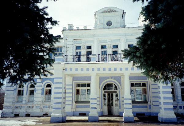 Вид усадьбы с фасада не самый интересный, но довольно привлекательный и достаточно парадный. Отсюда здание кажется симметричнее, чем на самом деле.