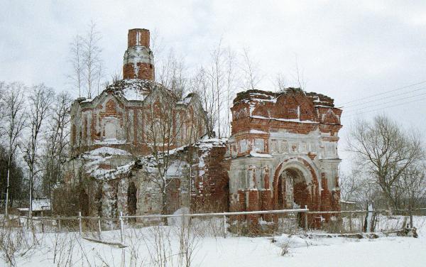 Трудно представить, как смотрелась церковь с колокольней, остатки первого яруса которой мало что говорят об ее первоначальном виде.