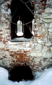 Тихвинская церковь, напоминающая своим убранством лучшие образцы XVII века, хороша и в руинах. Остатки старых деревьев придают дополнительный колорит запустения...
