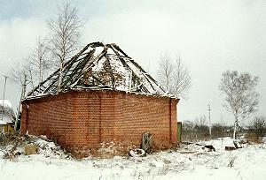 На полпути от церкви к реке стоит старый кирпичный сарай, используемый местными жителями для своих нужд.