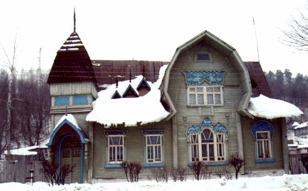 Чего не ожидаешь от тихого старорусского города - так это модерна. А только на одной улице Ленина - несколько таких построек. Дом Пришлецова построен в 1915 году председателем земской управы. Главный фасад богато декорирован деревянной резьбой с мотивами "русского" стиля.