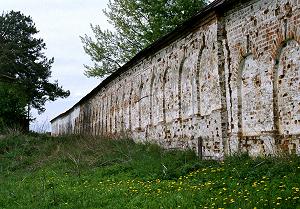 Монастырь окружен невысокой кирпичной оградой, когда-то белоснежной, а сейчас слегка пожухшей.