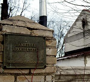 Вот эта табличка и охраняет памятник. Трудно ей в одиночестве...