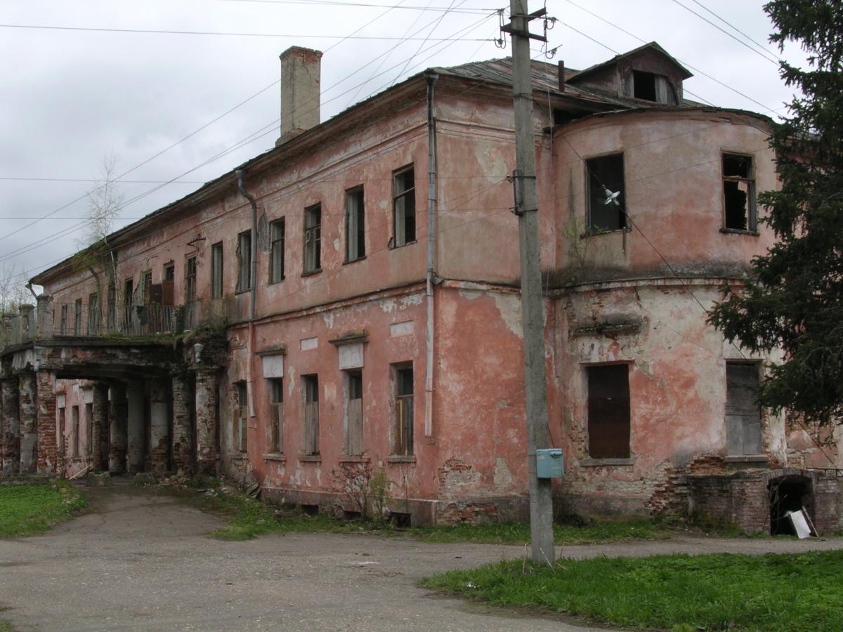 Главный дом со сводчатым подвалом был выстроен в стиле барокко, когда-то он был одноэтажным. Фасады были украшены фигурными наличниками и пилястрами из белого камня. Во второй половине XIX века дом приобрел второй этаж, были пристроены две полуротонды в торцах, тогда же дом получил внешнюю отделку с стиле позднего классицизма.