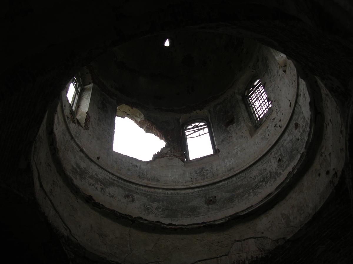 Односветная ротонда храма с небольшим барабаном, покоящимся на черырех пилонах, снаружи переделана. Барабан оформлен в стиле позднего ампира.