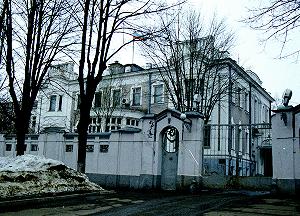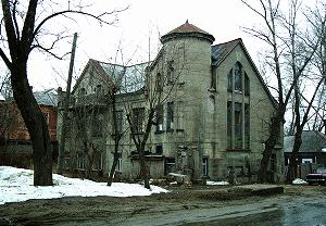 Хозяйственный корпус усадьбы А.Дюрингера стилистически близок главному дому, но скромнее. Своеобразие прямоугольному дому придает почти квадратная трехярусная башня с пирамидальной кровлей, завершающейся шпилем. Интересно, что количество оконных проемов на первом и втором этажах не совпадает, большие окна второго этажа вероятнее всего переделаны. Хозяиственный корпус недавно отремонтирован. Будем надеяться, что главный дом тоже дождется реставрации...