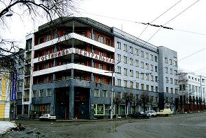 Одним из образцов ивановского конструктивизма является гостиница "Центральная", построенная в 1929-1930 годах по проекту архитектора Д.В.Разова, при участии Я.Ф.Попова. Интересно, что несущими конструкциями основной части здания (почти П-образного в плане) являются кирпичные стены, а в угловой части (с открытыми лоджиями) применен железобетонный каркас. В гостинице можно остановиться и осмотреть конструктивистское здание изнутри: довольно своеобразно диагональное расположение главной лестницы и двух старых лифтов по бокам от нее. В городе есть и более современные гостиницы, но если вы хотите ощутить дух 20-30-х годов - выбирайте "Центральную"...