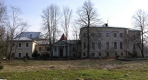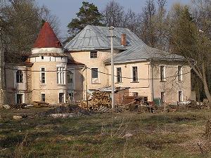 Вот и все, что осталось от старинной усадьбы. Рядом остатки сада и парк из огромных деревьев, частично вырубленных, частично поваленных ветром. Некоторые величественные старожилы еще живы и простирают свои ветви вслед редким посетителям.
