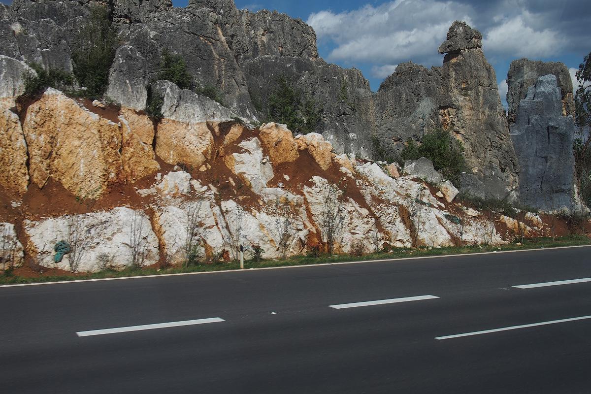 По дороге из Куньмина в Луопин, в окрестностях Шилиня, перед пассажирами автобуса во всей красе предстают знаменитые каменные леса, еще не освоеные туристической индустрией.