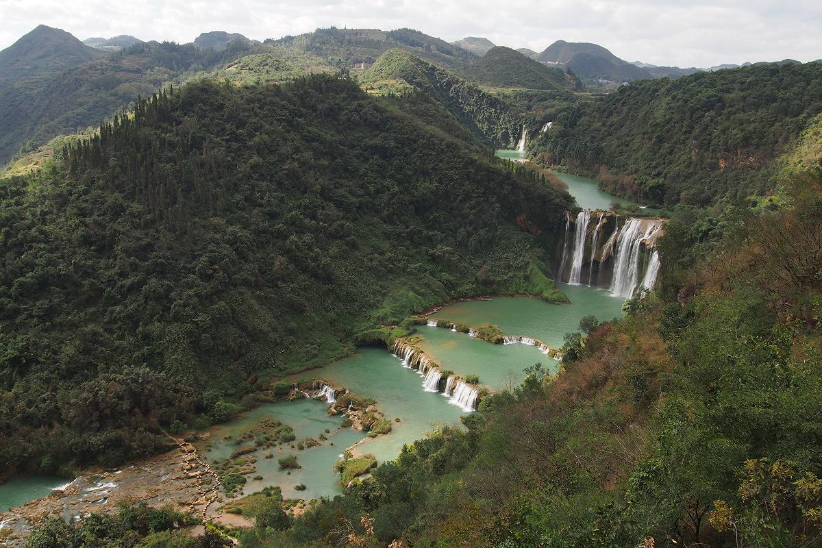 Вот и весь каскад перед нами. Ну или почти весь, самый верхний водопад, поманивший нас издали в полях, в кадр не вошел.