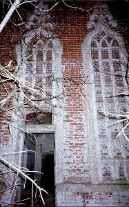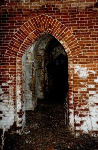 Редкий кадр - уцелевший проем стрельчатой двери. Гораздо больше в Каргашине проломов и пробоин.