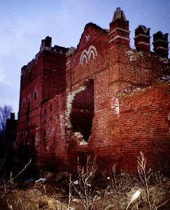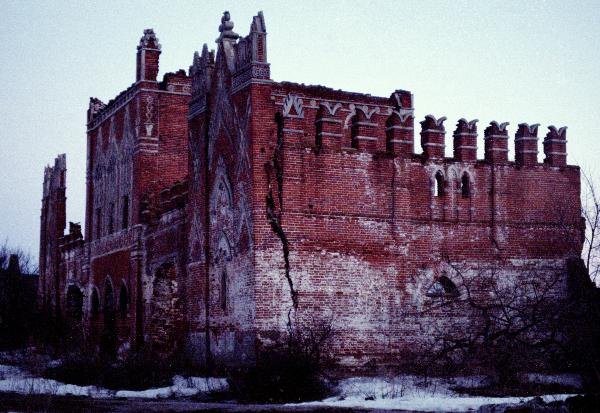 Вот, наконец, и совхоз Каргашинский. Чуть в стороне - какие-то развалины. В закатных лучах все это выглядит фантастическим видением. Будто руины волшебного замка-крепости стоят на окраине села. Это бывший конный завод барона фон дер Лауница. К сожалению, нынешнее состояние постройки не оставляет надежд на восстановление и реставрацию. А ведь когда-то это был настоящий дворец для лошадей. Рядом располагались жилые корпуса, хозяйственные строения, парк, сады, пруд. Многое сохранилось, часть - в руинированном виде. История застройки усадьбы не совсем ясна. Вероятно, строительство велось в несколько приемов на протяжении всего XIX века. Ансамбль псевдоготических развалин отдаленно напоминает Царицыно. Но Царицыно - строже и гармоничнее, Каргашино же было более помпезно и обильно украшено (зубчики, башенки, наличники, кокошники и т.п.). Несмотря на некоторую вычурность, каргашинский комплекс выглядит величественно и производит впечатление постройки незаурядного мастера. Усадебный ансамбль такого размаха и выразительности требует изучения и хотя бы сохранения. Безумно грустно наблюдать свалку мусора в великолепном конном дворе. Такая красота заслуживает большего...